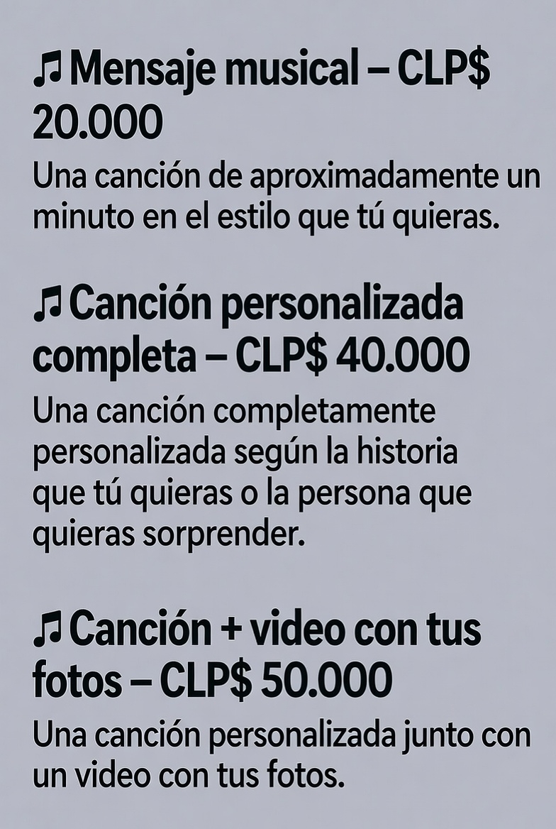 -Tu Canción Personalizada de cualquier estilo en MP3 (duración de 3 a 4 minutos).